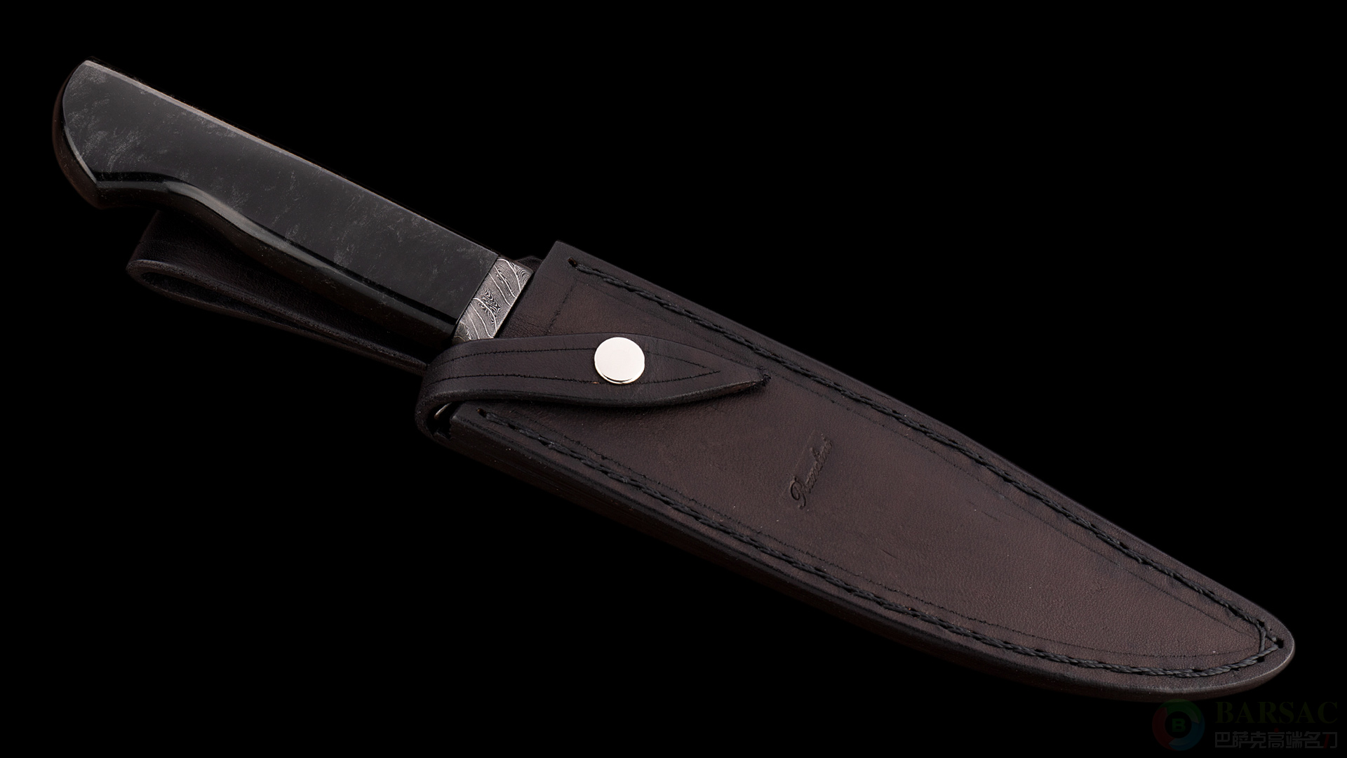 护手采用大马士革钢制成,搭配染色枫木刀柄,握感柔滑细腻。配有原配手工刀鞘,可谓大马颜值极高的实用款型博伊精品。