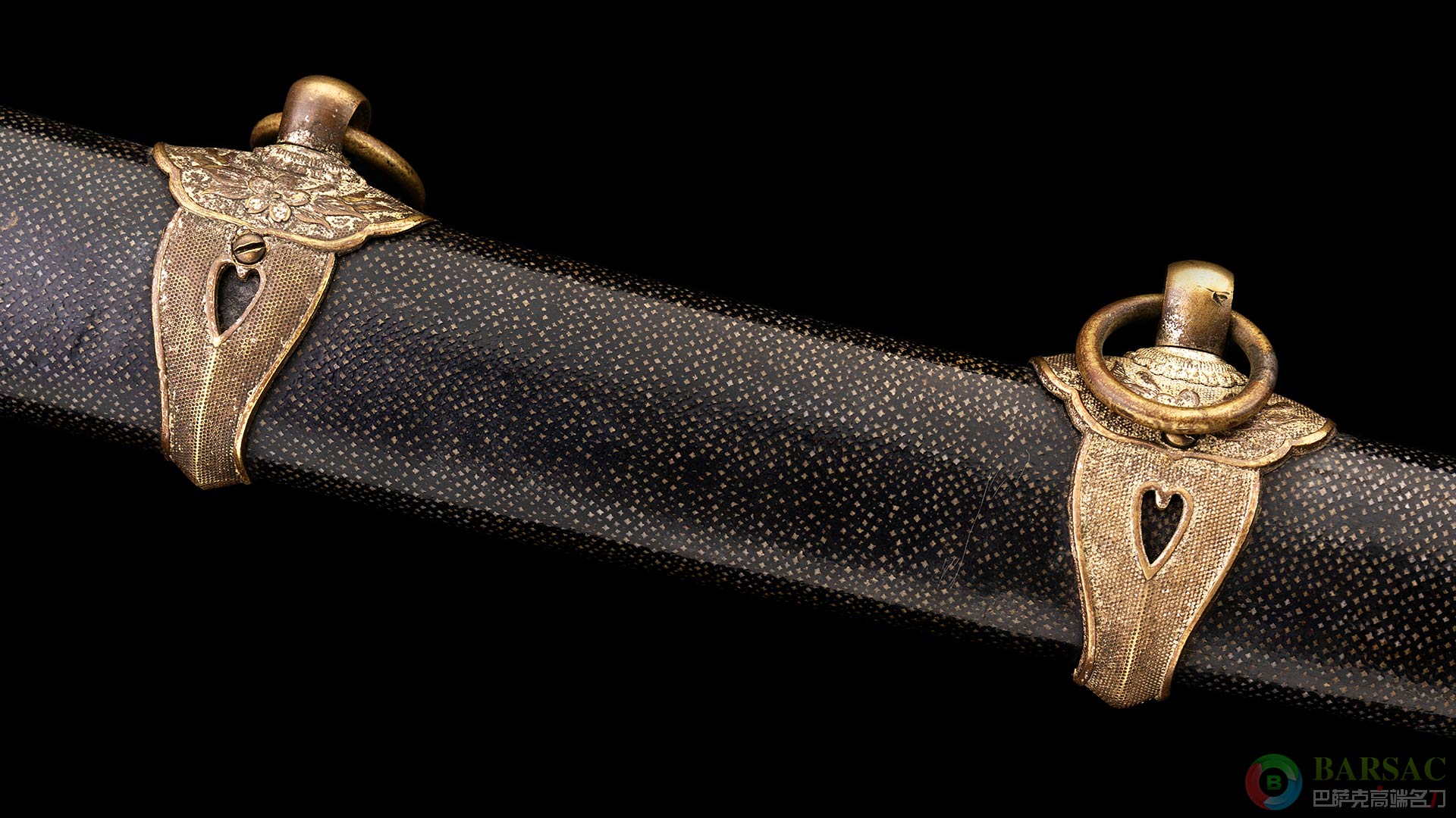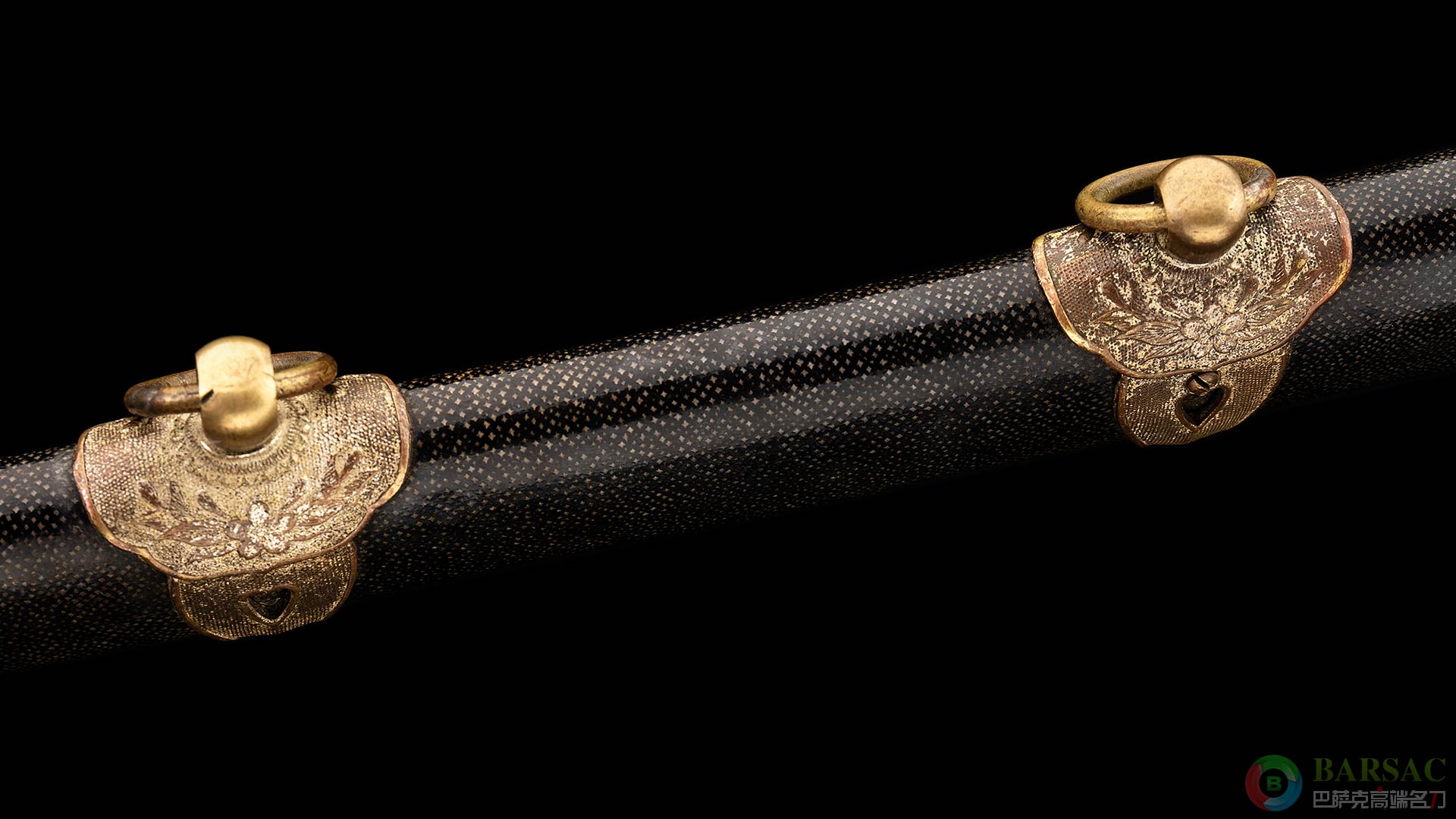 二战、日本 海军 97式军刀。海军授命刀匠:小川外藤锻造。“昭”字款!带有日本登陆证。蛟鱼皮刀鞘。全长100厘米、刃长66厘米、反1.6,元 3.0、0.75;先2.0、0.5。授命带有铭文的97军刀,都是配给高级军官或者由富裕的士兵家里定制配给。整件作品保存完好,品相出色。