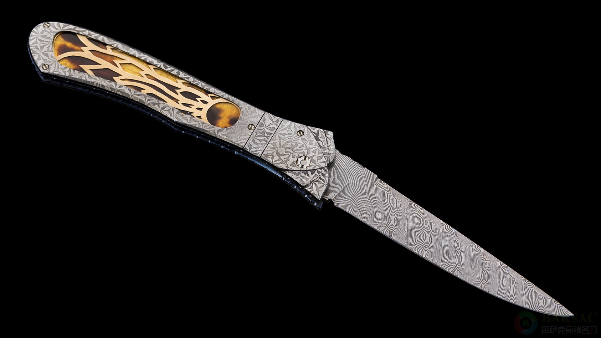 超大尺寸高级奢华侧跳!由美国名匠比尔·塞恩登手工打造,孤品唯一。比尔1981年开始做刀,擅长制作精美的折刀与自动刀。比尔同时还擅长雕刻,他作品中伴随了大量的手工锉刀塑形,细节非常丰富,比尔曾获得美国刀展最佳折刀奖项。