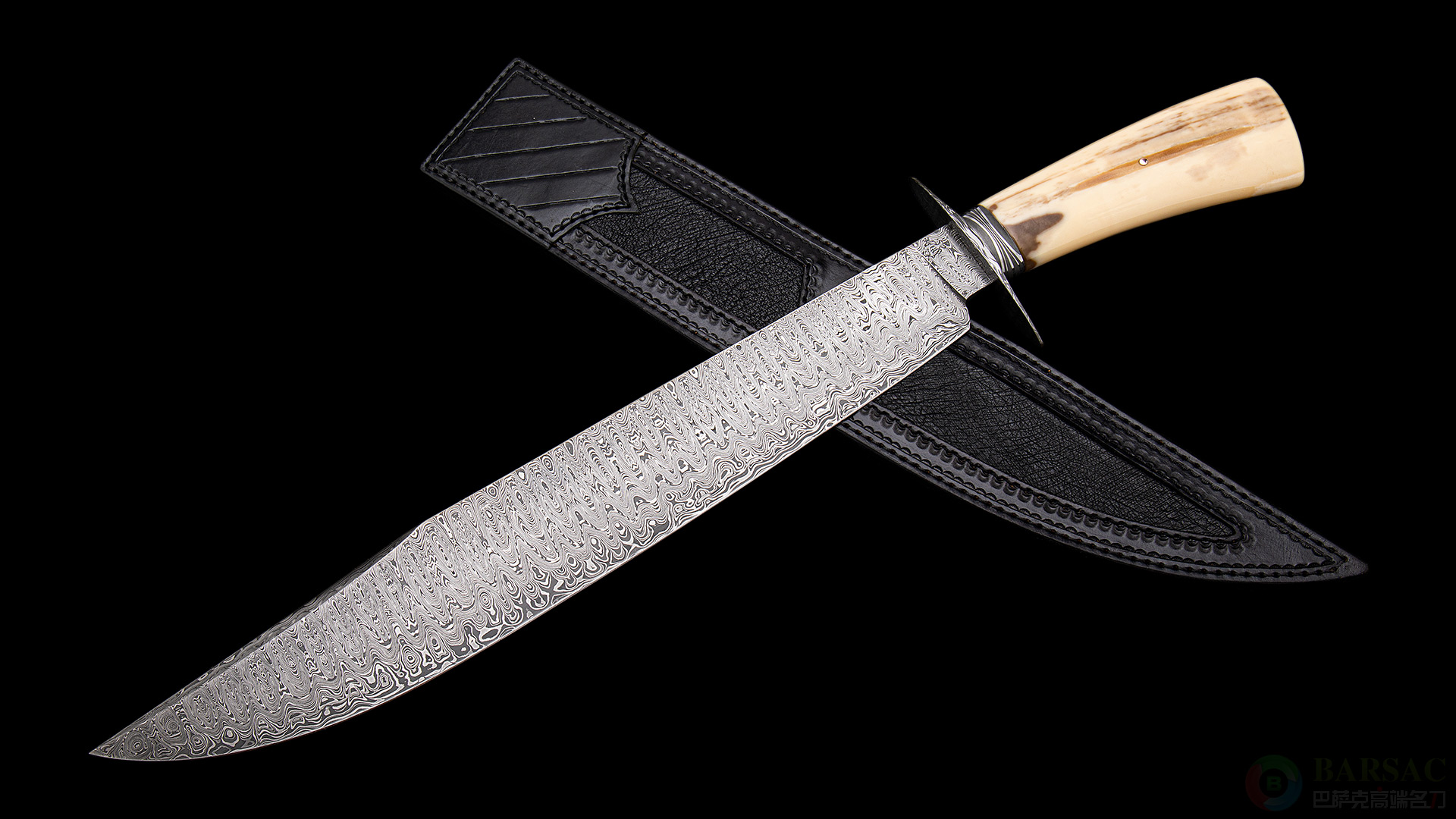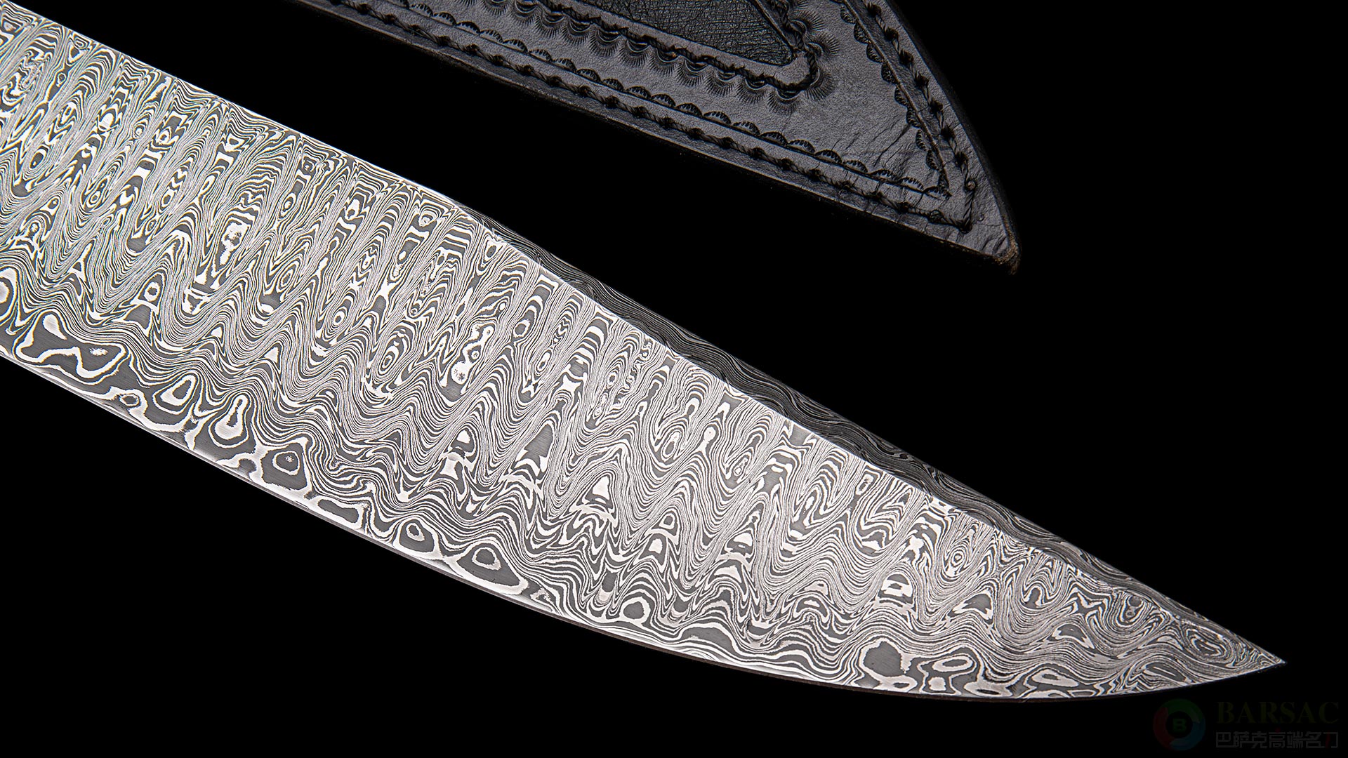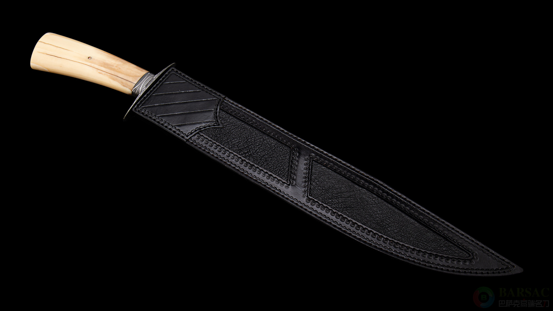 刀鞘采用牛皮压花镶嵌河马皮制作而成,缝合精美,为宝刀提供了绝佳的庇护所,单独欣赏也如同一件皮革艺术品。