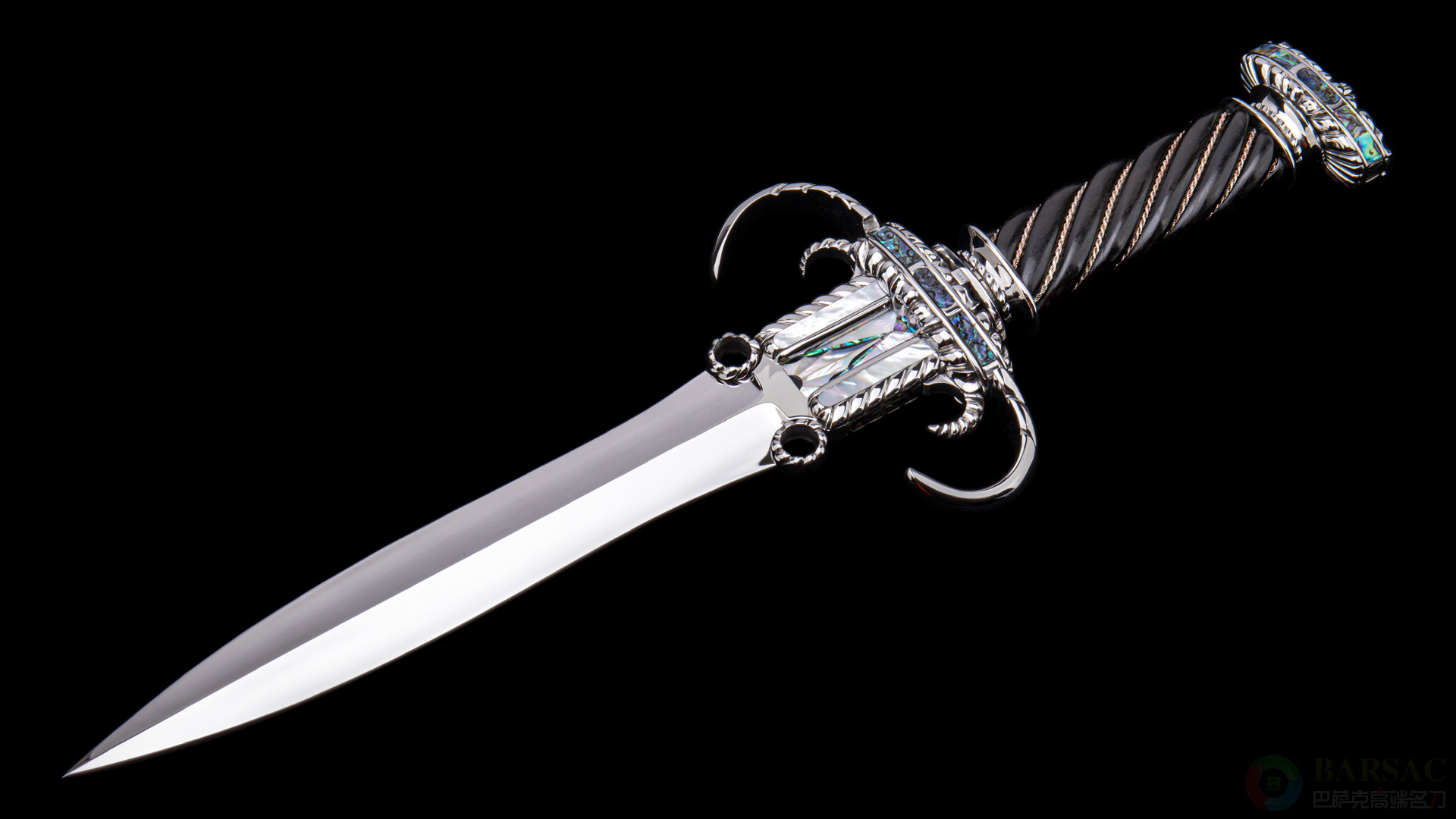 意为地底世界的艺术短剑,2021年亚特兰大刀展藏品,由美国ABS刀匠协会JS保罗·迪斯法诺全手工制作,孤品唯一。来自纽约的保罗极具制刀天赋,除了大马锻造以外,保罗还擅长雕刻,其作品融合了东西方的风情。保罗曾获得国际刀展重要奖项,是年轻一代ABS中的佼佼者。