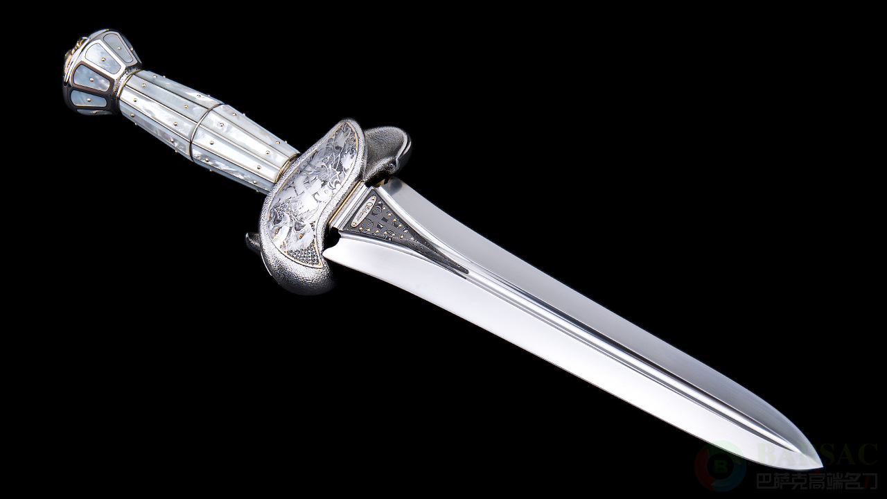 现代艺术刀领域神级作品!欧美最牛逼的短剑作品之一!耗费上千个工时独创的“金缕玉衣”剑柄璀璨至极!意大利刀剑艺术家协会现任主席法布里希奥与意大利数一数二的钢雕大师马雷克·托克里协力制作完成。