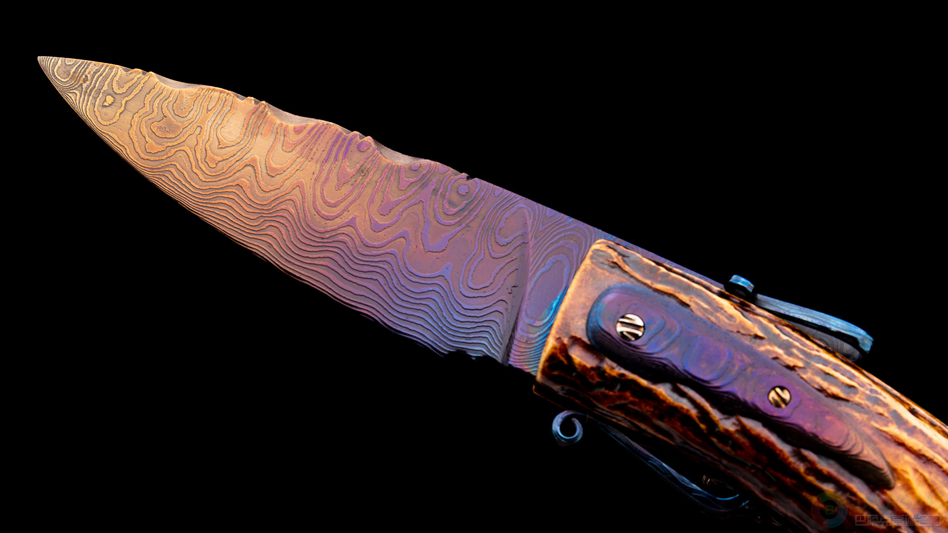 独特的双刃哥布林第一次见,色彩梦幻斑斓!由美国ABS刀匠协会MS大师韦德·柯尔特手工打造,孤品唯一。韦德97年获得JS,99年获得MS称号。其作品保留了传统美式风格,同时也加入了很多新的艺术元素。直刀、折刀、哥布林折刀、自动刀韦德都能驾轻就熟。韦德多次获得美国展会最佳折刀、最佳艺术刀等大奖。