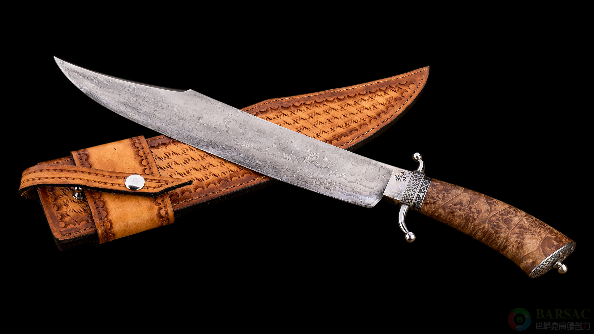 手柄精选雀眼枫木树榴,表面纹理十分独特,握感非常棒。配有库克亲手制作的皮鞘,表面压花处理,完美收纳。最原汁原味的西南博伊刀型,整刀显示出高超的艺术性同时又保留了原始美国博伊的粗犷之美,詹姆斯作品近年来一直是国内收藏的热门,如此精品更是ABS爱好者的不二之选。