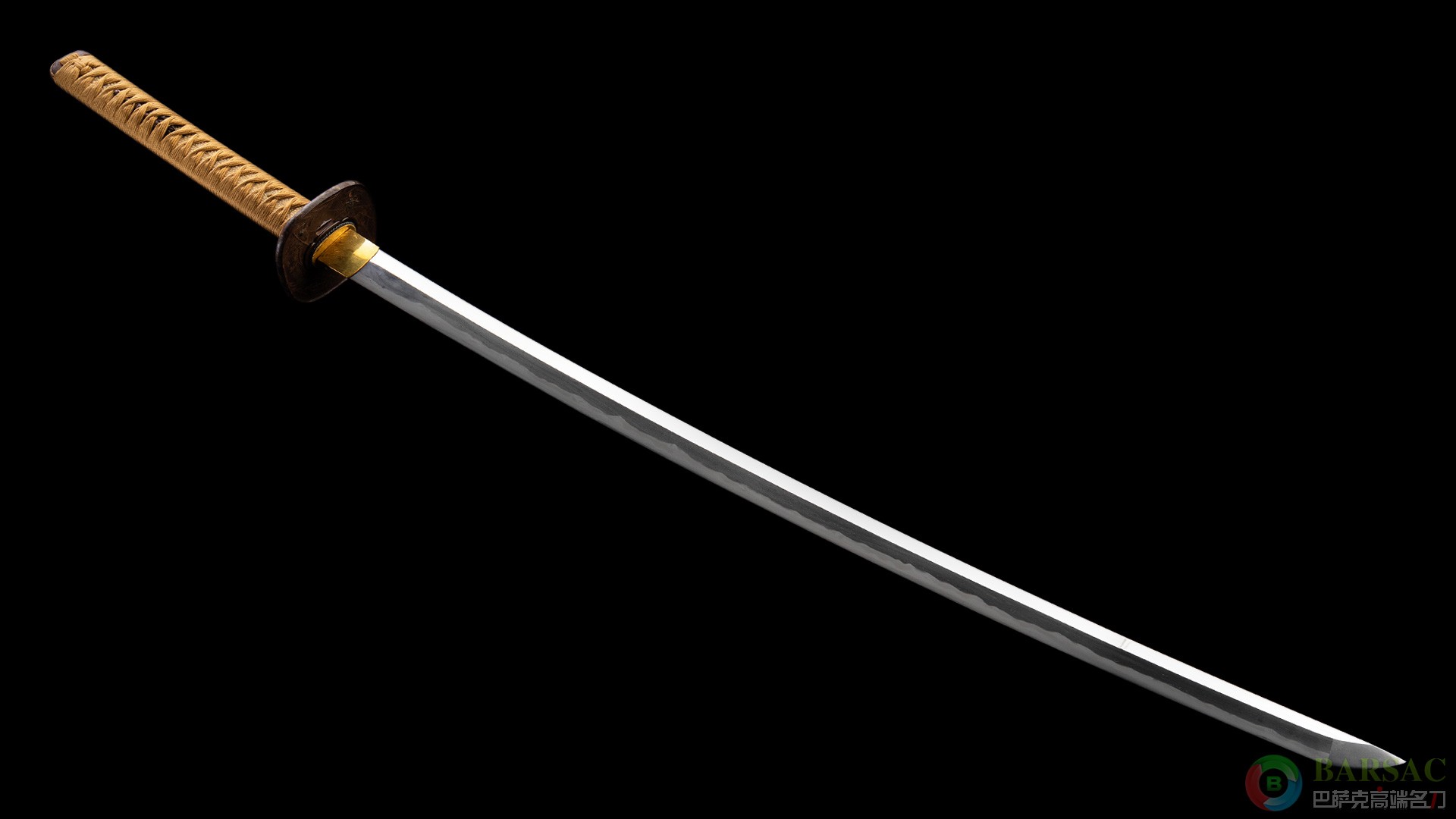 保存级打刀,带日刀保证书、刀拵、白鞘、刀袋一应俱全,名家之作!井上正国居住在淡路国,活跃于幕府末期庆应时代的刀工。这把打刀的刀镡也出自井上正国之手,非常珍贵。打刀锻造于应庆二年(1866年),全长96厘米,刃长70.4厘米,刀反1.4厘米,刀条裸重890克。平面碎段复体暗光花纹刃,漂亮的烧刃纹,清晰且流畅。