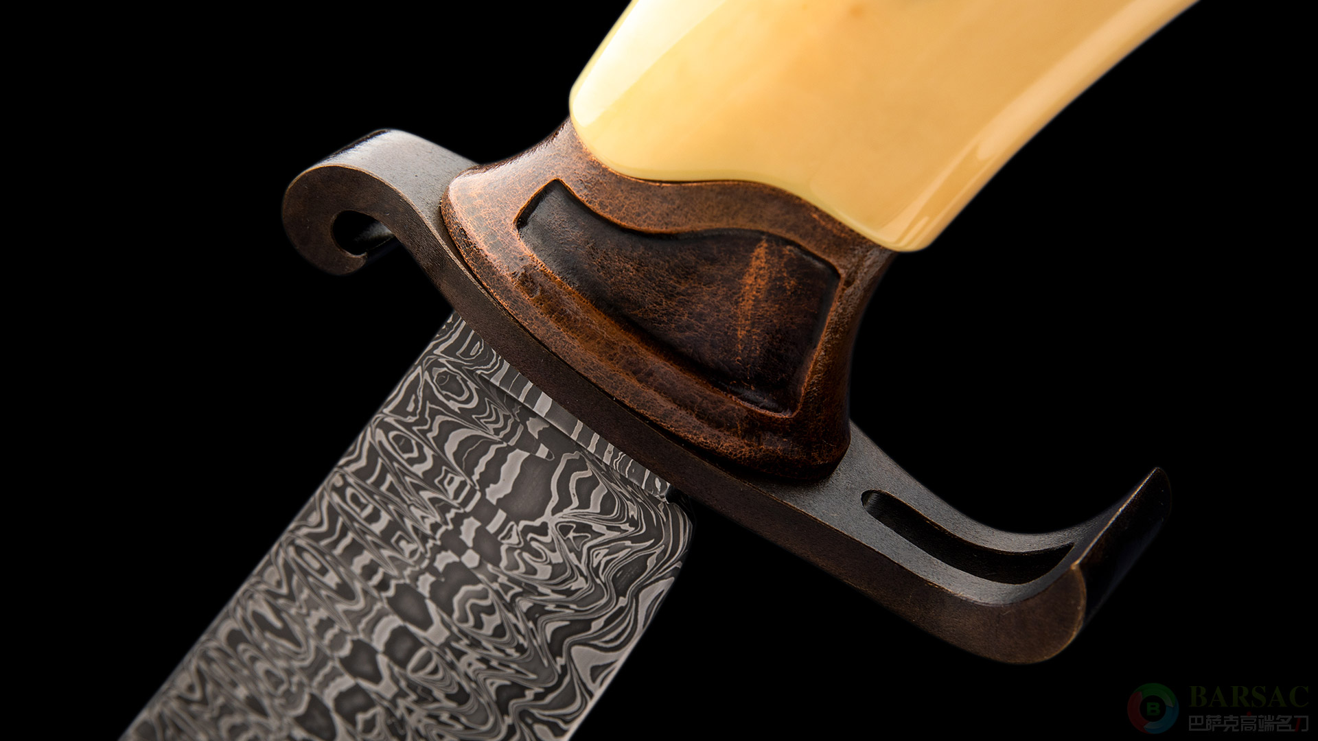 这款破浪作品刀刃采用安德斯锻造大马士革钢制成,花纹细腻连贯,质感出众,如同惊涛骇浪,宏伟壮丽。刀柄采用化石海象牙与铜制成,外形简练饱满,充满浓郁的金属气息。