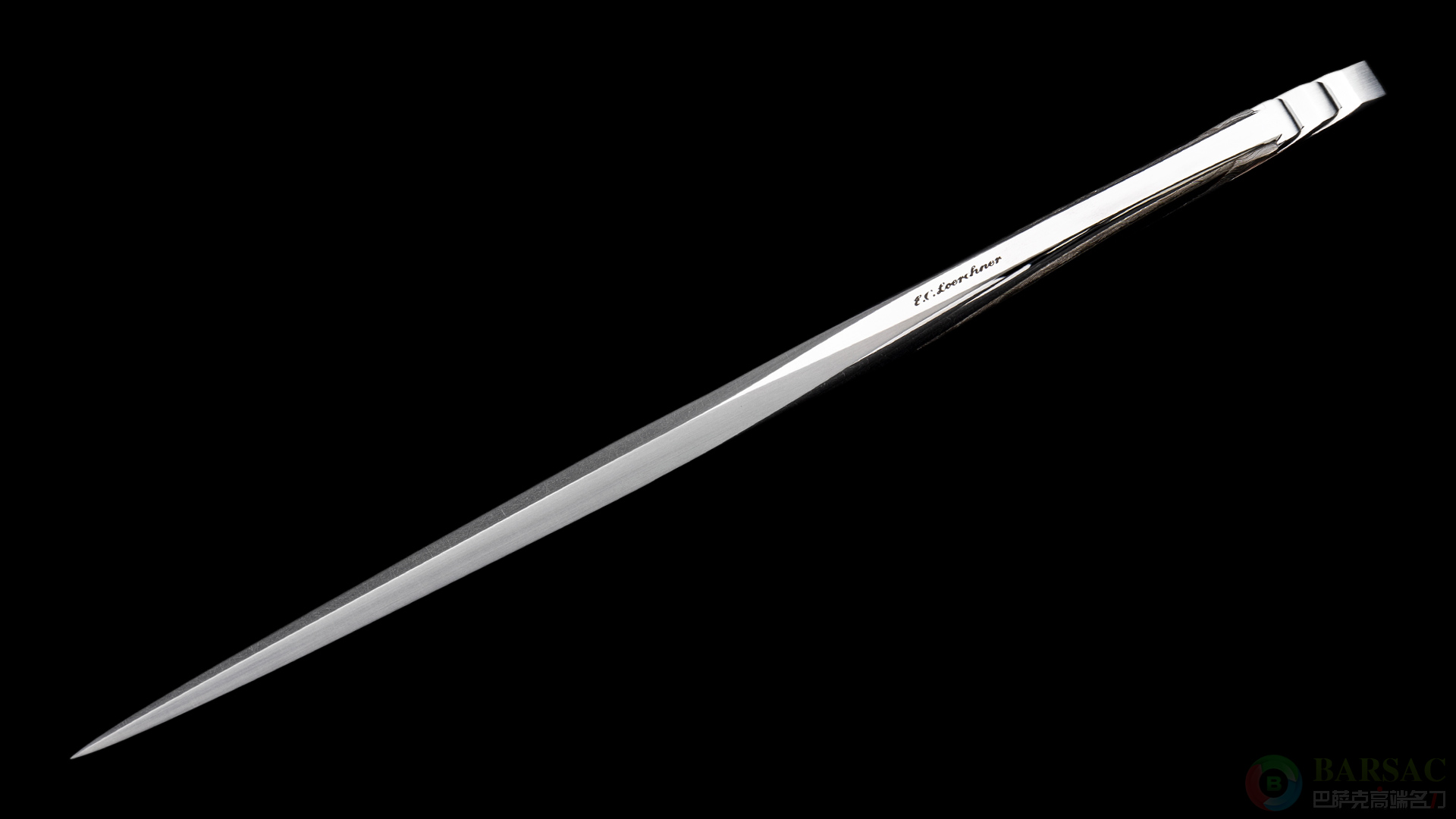 虫洞、归墟、风眼?高杆的设计总是能钩起人们对壮观事物的充分联想!AKI大师伊丽莎白·洛奇勒全手工制作,孤品唯一。伊丽莎白是现代艺术刀巅峰大师沃夫冈·洛奇勒的女儿,也是沃夫冈流派最正统的继承人。伊丽莎白继承了父亲采用全手工锉刀制作刀具的技艺,在艺术设计方面加入了珐琅瓷设计,其作品的线条更加带有女性特性。出道以来伊丽莎白多次获得国际大型展会大奖,多次登上各大刀剑杂志报道。