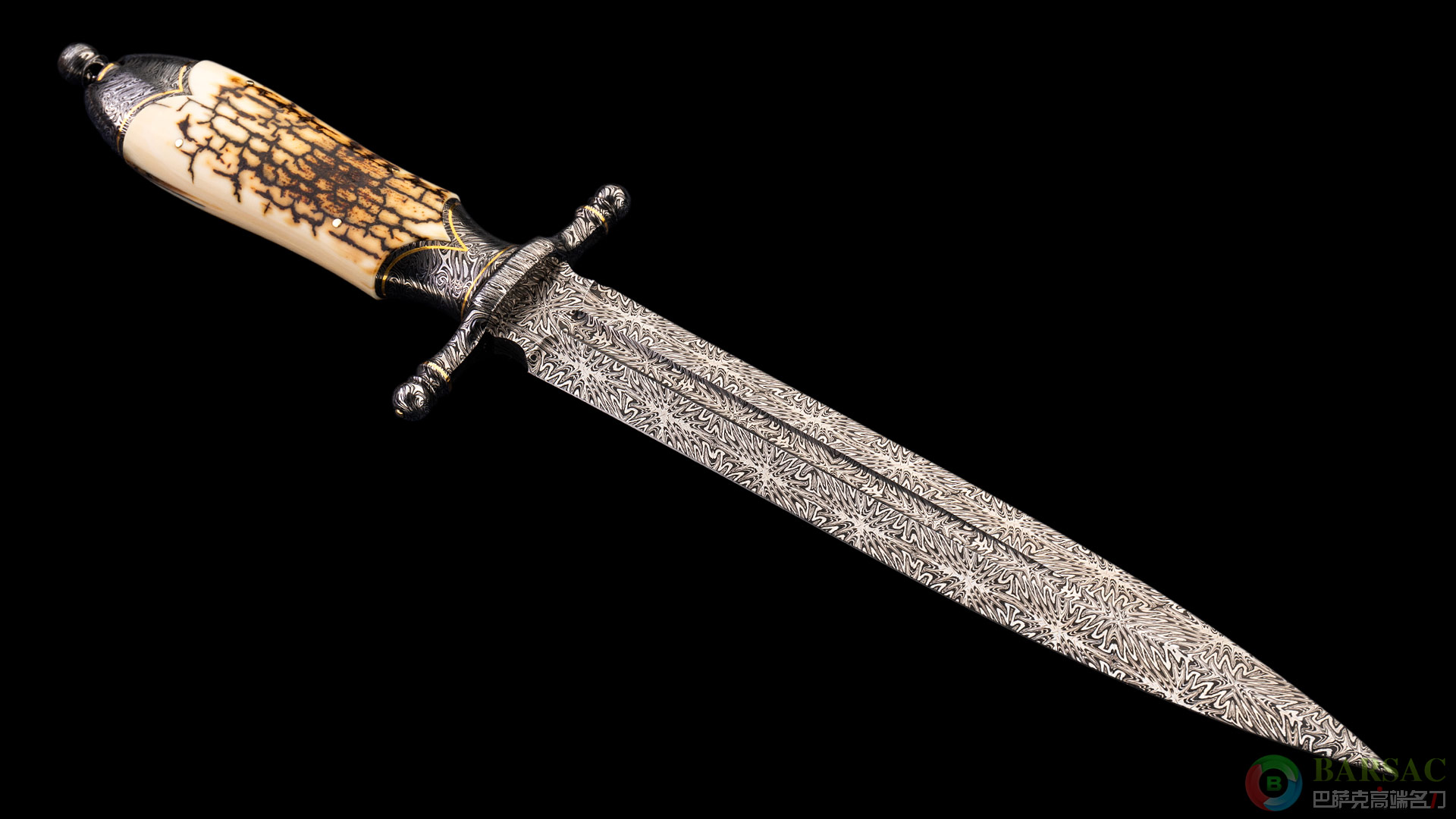 整件作品挺拔有力,各部分零件贴合滴水不漏,具备卓越的手感以及平衡。配有鳄鱼皮鞘并搭配大马士革鞘栓,品质相当出色。朱利安不接受订制,从细节图片可以清晰看到其作品的过人的魅力。
