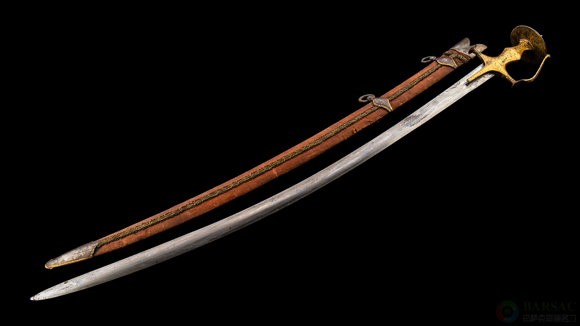 整剑所有花纹图案装饰精度极高,细节极其精湛,就算放在今天的金属雕刻领域也属于佳作。曾今更是只有贵族或者富豪才有资格拥有此等级别佩剑,收藏价值不言而喻。保存完好,所有佩剑无遗漏就非常难得,有部分氧化与磨损,凸显沧桑岁月,刀鞘皮革为后配,装具全部为原装。