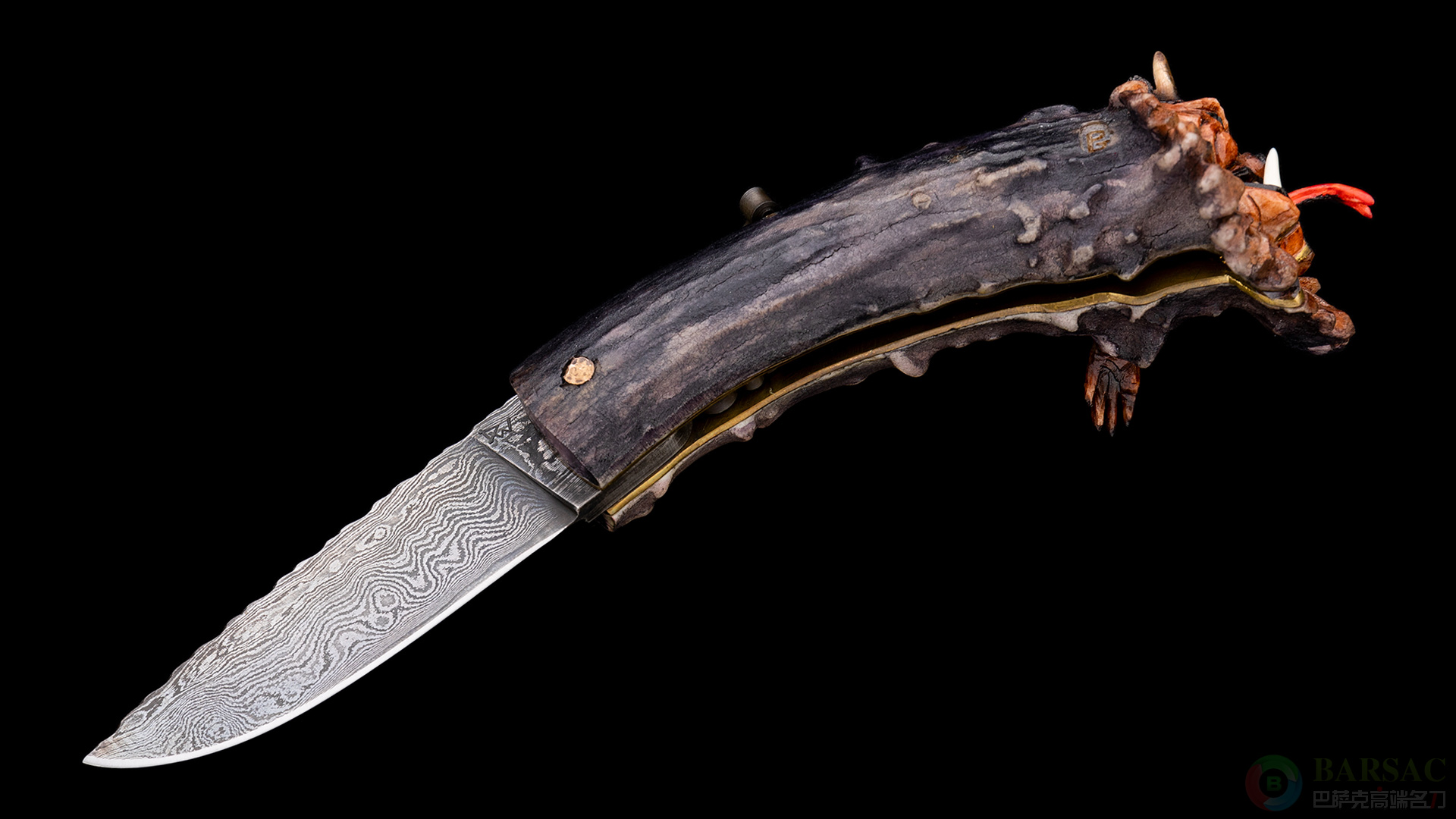 2022年AKI刀展藏品,AKI艺术刀协会大师、美国ABS刀匠协会前任主席MS大师哈维·迪恩手工打造,孤品唯一,为哈维制作的最大尺寸的口袋刀机构剑型折刀!哈维制刀数十年,作为ABS曾今的主席孕育了一批批优秀的新人,其本人也在海外展会多次获得业内大奖,同时哈维还精通雕刻,技术全面,是一位德高望重的锻造艺术家。
