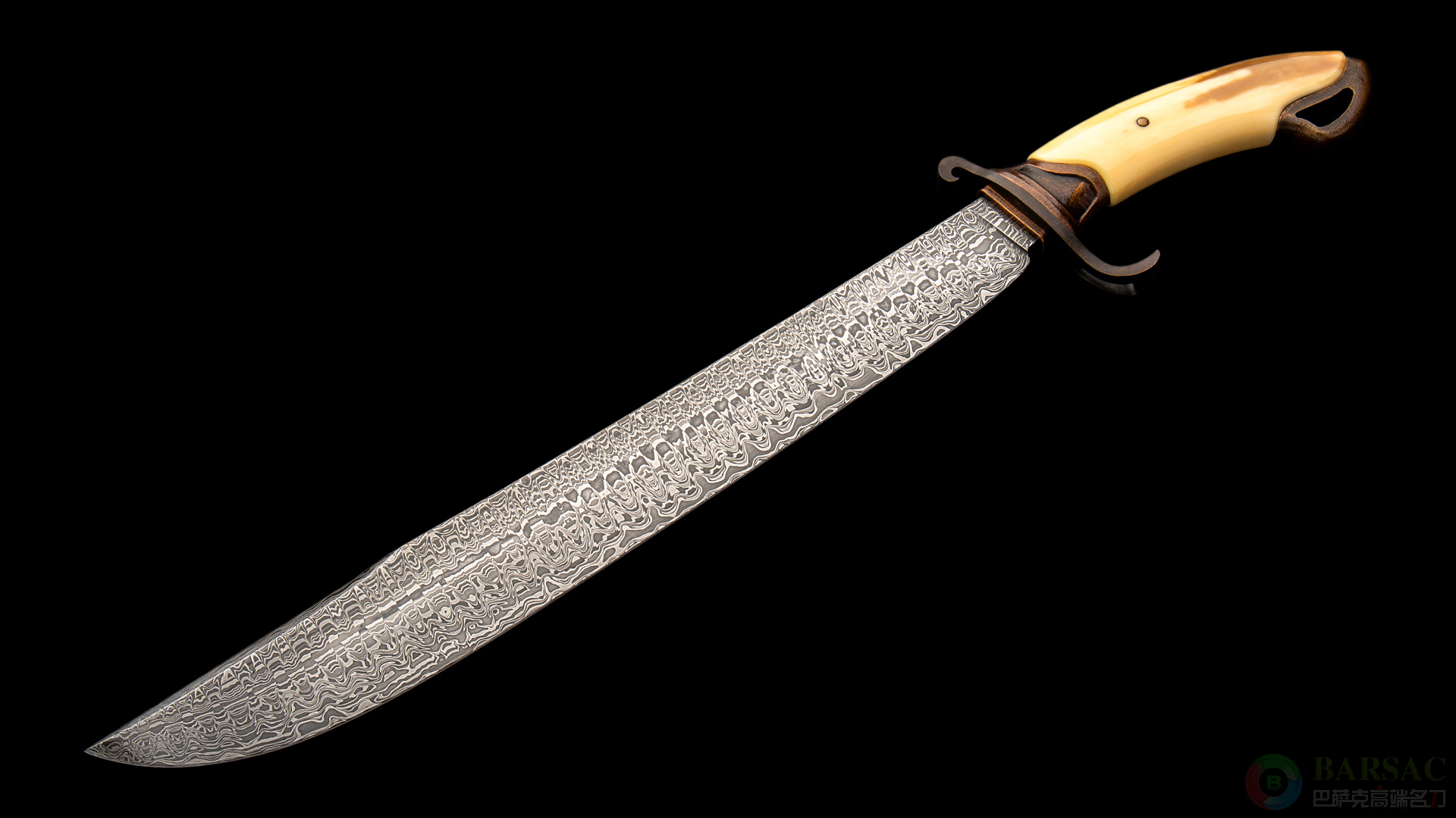 小布什御用刀匠约翰·霍里根锻造拼图马赛克大马士革钢上扬式波斯刃弯刀(售罄)
