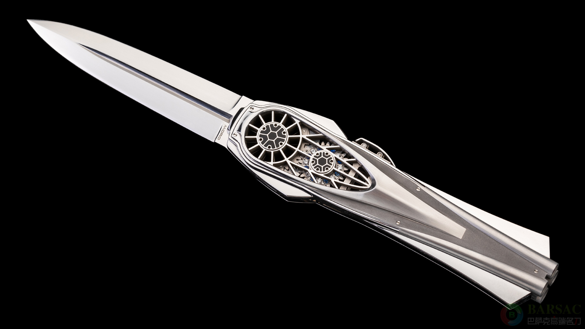 跑车似乎是每一个男人梦寐以求的物件,这件折刀勾起了每个男人心中对速度的渴求,让人欲罢不能。最佳艺术折刀获奖款式,由AKI折刀大师,意大利名匠莫诺·柯纳多全手工制作,科幻感爆棚。意大利作为文艺复兴发源地,在现代艺术刀设计领域也相当突出。莫诺是现代意大利刀具大师中的代表人物,72年出生,天赋极高,对刀具的设计不抄袭任何名师,自成一派。其作品华丽时尚,就像豪车的概念版一样,每一款设计都是对未来的一次展望。其设计的陀飞轮折刀获得刀界年度评比最佳设计大奖,让人耳目一新。