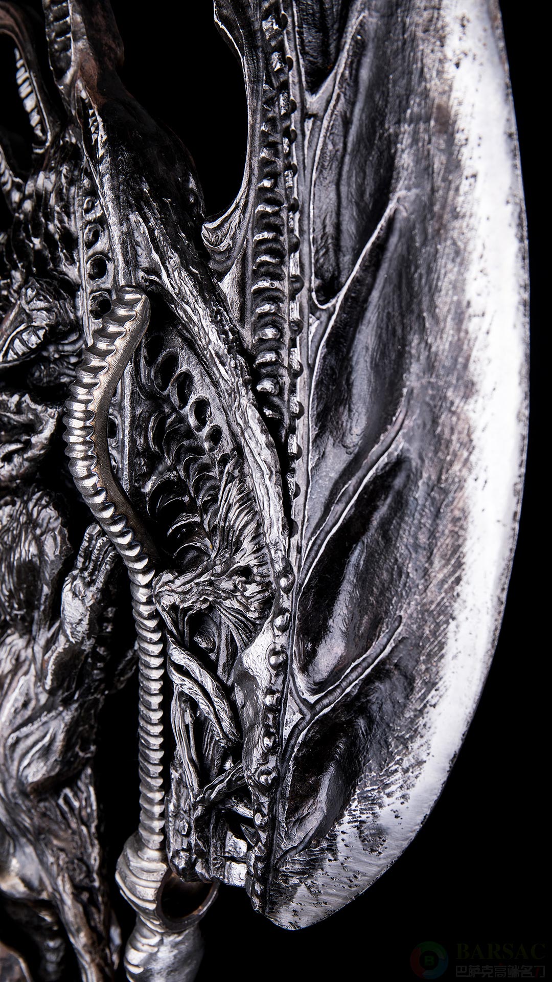 除了精湛的制作技艺之外,此件战斧的设计也相当艺术,巧妙地运用了异形身体的形态特征,来实现冷兵器的属性。斧刃、斧柄等细节如同浑然天成,就连背上的管线也强化了作为冷兵器的功能性,可见艺术家的非凡造诣。